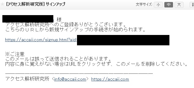 そうすると登録したメールアドレスに登録終了の通知メールとともにサインアップ用リンクが送信されてきます。