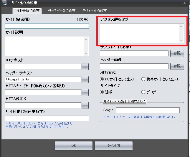 この赤枠内に先ほどのコードをコピペして、あとはOKをクリックすれば終了です。